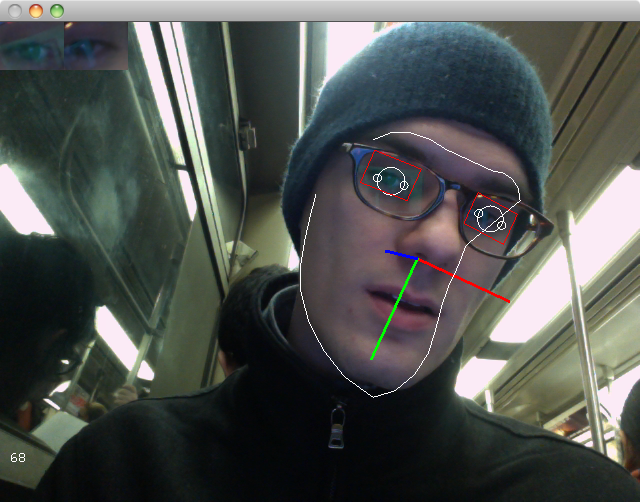 In the following example I captured the webcam of my PC, detected the position of the eyes and rendered the Shopware logo over them: