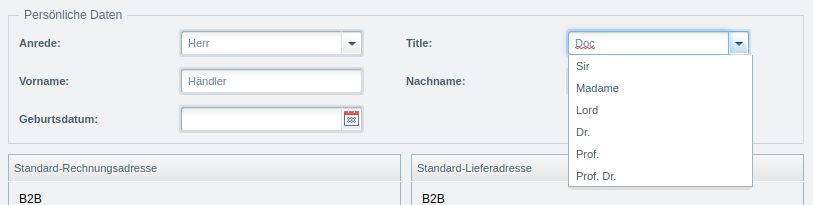 In this example, an extension for Shopware's default customer module is implemented. First of all, an existing free text field should be changed ComboBox with preset titles.