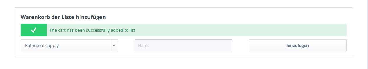The user can also create a new order list from the cart, by selecting create new order list.