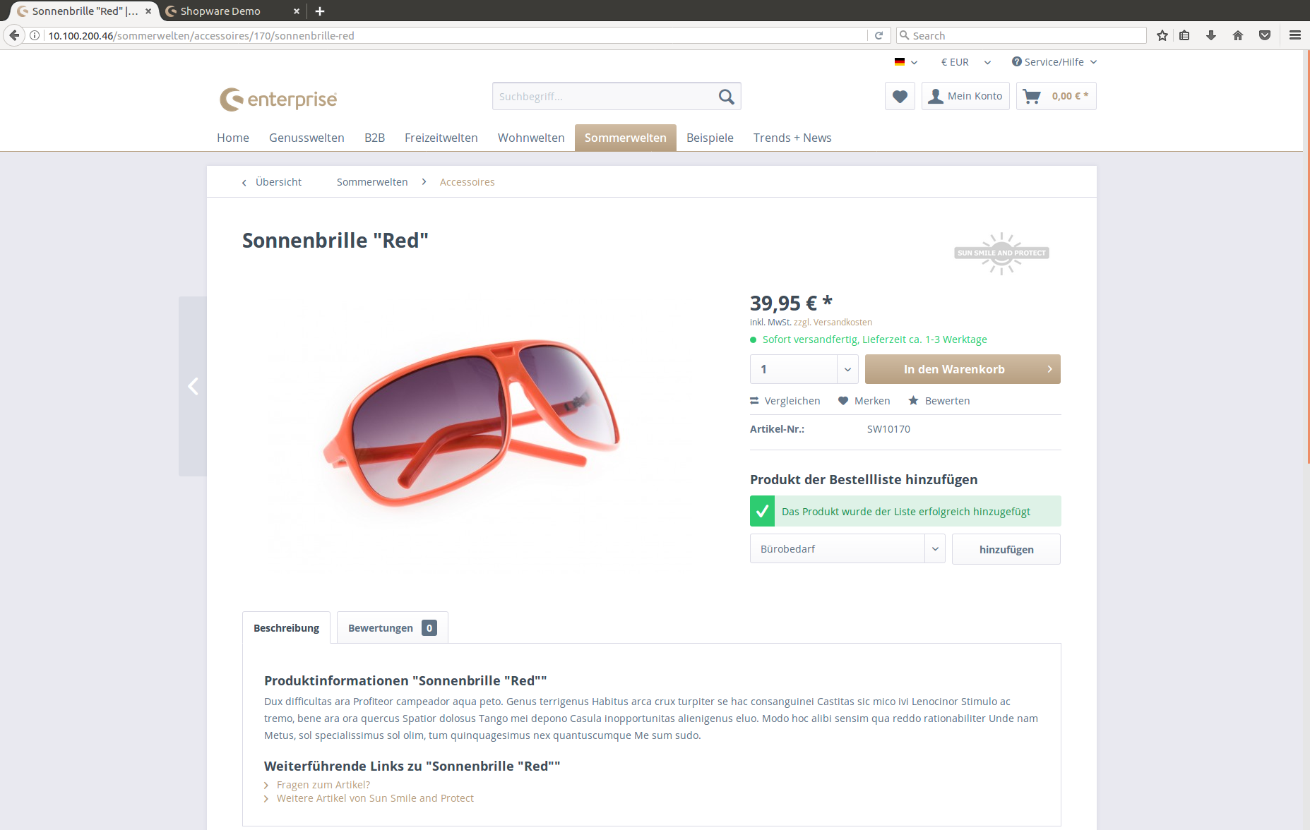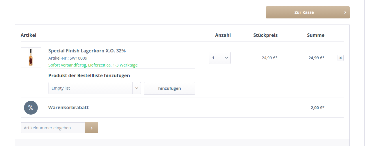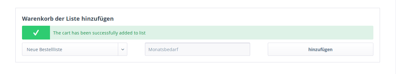 On the confirm my-shop.de/checkout/confirm and cart page my-shop.de/checkout/cart, a user can add all normal products (modus = 0), to a specific order list.