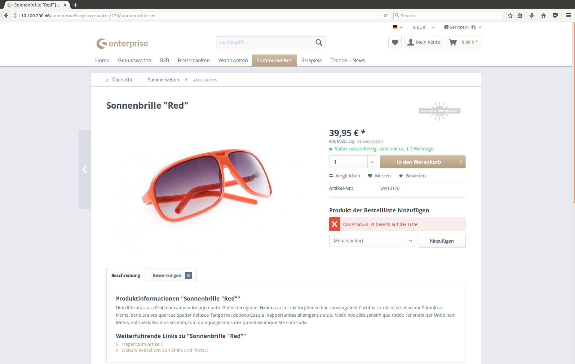 If the product is already on the list, an error message will be shown.