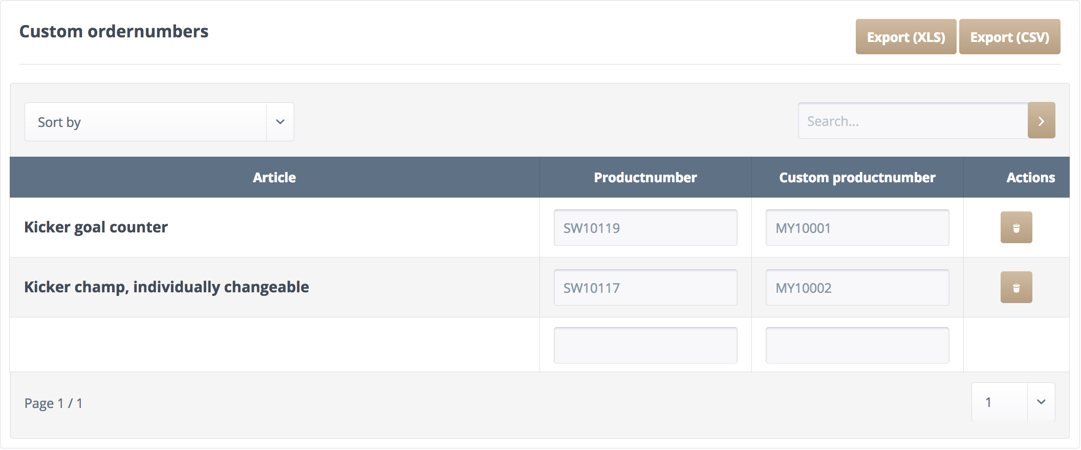 The custom ordernumbers can be used instead of the shop ordernumbers.