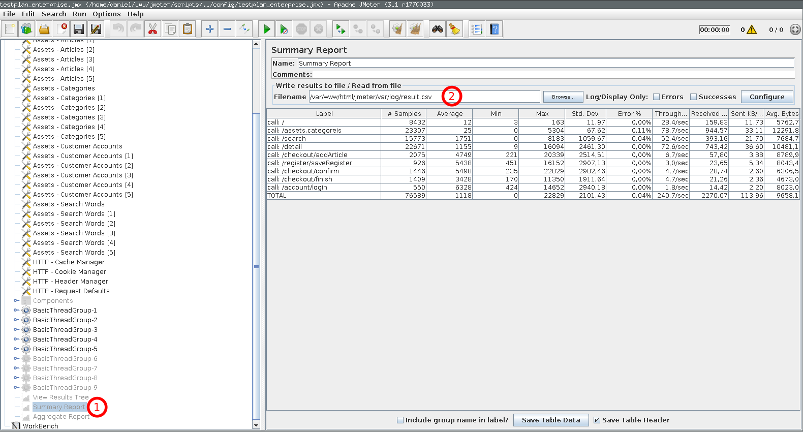 After the test plan exited, you can run ./scripts/jm-edit.sh again in order to open JMeter. At the bottom of the navigation